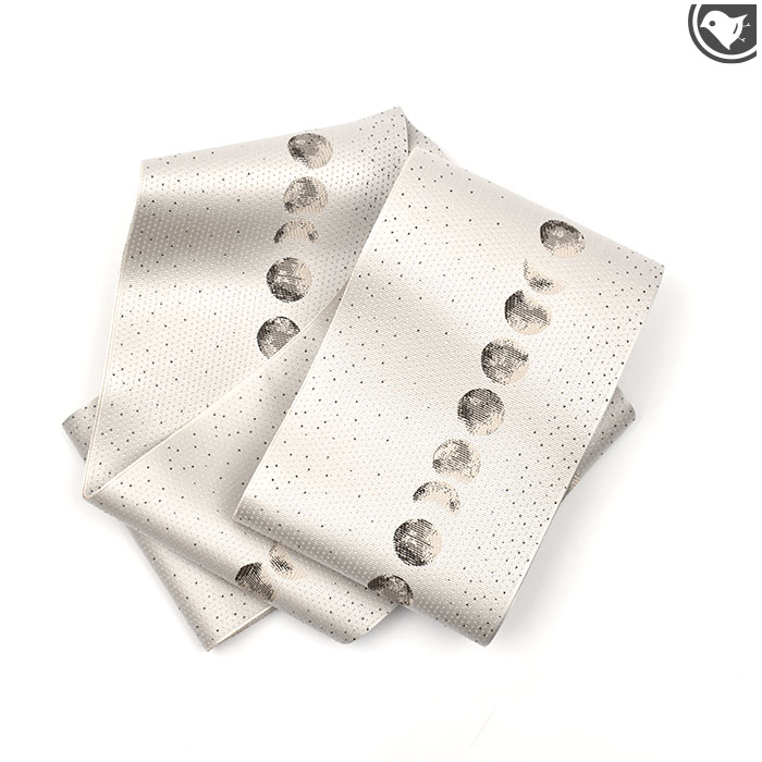 夜空好き♪空好きの方!! コチラの帯に決めて下さい♪ 半幅帯 博多織 老舗 協和織 謹製 両面柄 “月の満ち欠け” ご紹介! 博多織の名門!“協和織”さんが 織り上げて逸品帯! はい!確かに!遊び心あるカジュアル柄 なのですが・・“手の込んだカジュアル柄”は 大人が楽しめる柄行なのですよね♪ そう!! 協和織さんの織り上げる半幅帯は 名古屋帯と同じ工程を組んで おりますので、 カジュアルでも安っぽさがないのです♪ だから安心! 柄・・見て頂けました?♪ “月の満ち欠け”が時間の流れを表し それも!“クレーター”月の文様まで♪ このクレーターが織の表情を豊かにし その周りには ぽつぽつと 小さな点が “星”を表している・・そう!柄には ストーリーがあるのですよね?♪ 月の柄は夜ならば・・裏の柄は昼間! 雲の隙間から覗く元気な太陽! 締める時間 夜と昼で 表裏を 使い分けても楽しいですよね♪ もちろん!柄だけではなく! 織の質も高いからこそ カジュアル柄でも 大人が安心でき、 触るとスグに分かる 強い糸の打ち込みは 質の高い織仕事が施されている証です♪ 表をメインに締めても裏をメインに締めても 半幅帯は 裏面が少し見えるケースが多く その時、表とは違う柄が見えお洒落を 楽しんで下さいね?♪ 【商品について】 ・半幅帯・全通柄模様・素材:絹 ・サイズ:・幅 約 16cm 長さ 約410cm 【合わせるお着物】 ・小紋・御召・紬 【場面】 カジュアル 【季節】 春・秋・冬 【商品番号】 22018 商品画像 ご不明な点・ご質問等…御座いましたらお気軽にお問合わせ下さい。 フリーダイヤル【 0120?644?293 】 店長「鈴木」がお伺いします! ★すべての帯が 「お仕立代」「帯芯代」 込みの料金! ★ご注文頂いてからの、お仕立ての為、約2?3週間前後のお届けになります。 ★すべての商品が【 全国送料無料 】! お仕立てオプション お気に入りの帯のお仕立てにこだわりプラスしませんか? 半幅帯 博多織 老舗 協和織 謹製 両面柄 “月の満ち欠け”お仕立て込!送料代引き無料![商品番号:22018] 52,800 ~