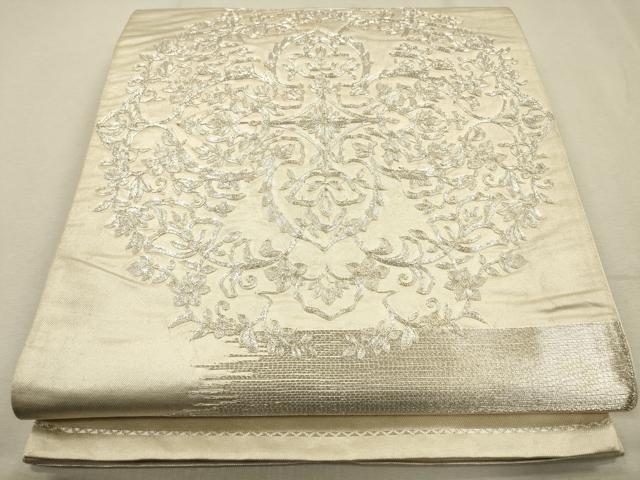 【美品】 袋帯 名品 動物 霞 箔 銀通し 濃紺 六通 正絹 【中古】 15,800 ~