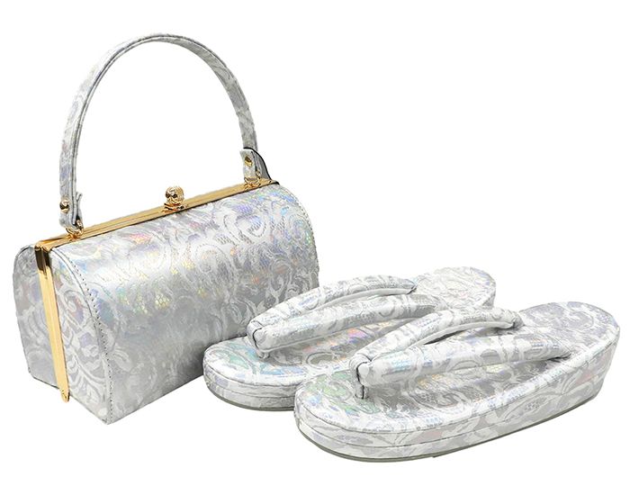 ■□■□■□■□■□■□■□■□■□■ 【商品説明】 草履・バッグセットです。 成人式や謝恩会・卒業式などの振袖やパーティーなどの華やかなお席の訪問着にもお使いいただけます。 バッグは洋装にもお使いいただける和洋兼用のデザインです。 ■バッグ ◆色:シルバー×ホワイト・オーロラ ◆柄:パイソン・リーフ ◆サイズ:高さ約10.5cm×よこ約20.5cm・巾:約10cm ◆持ち手の長さ:約31.5cm ◆素材:表地 合成皮革/中生地 ポリエステル100%/口金 金属 ◆底鋲付き ■草履 ◆色柄:バッグと同色・同柄 ◆素材:PVC合皮 ◆サイズ:フリー/23cm〜24.5cm 長さ:約24cm/巾:約7.5cm/かかと高さ:約5.5cm ◆二枚芯 ◆中国製 ■新品■ ■□■□■□■□■□■□■□■□■□■◆◇新品からリサイクル・中古まで。 。 着物や帯・和装小物が勢揃い。 。 ◆◇ \30%OFFクーポン配布中!/草履 バッグ 草履バッグセット フリーサイズ パイソン・リーフ 振袖 訪問着 新品 n1435 19,800 ~