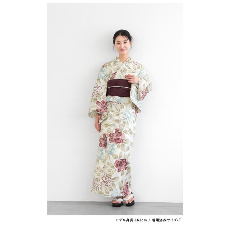 夏祭りにおすすめなレディース浴衣3点セット夏のお洒落に最適な女性用浴衣3点セットです。 花々が描かれたモダンなデザインです。 変わり織りの生地は、柔らかい肌触りと吸湿性に優れた綿100%です。 女性着物の身丈は、身長の長短5cm以内が適応サイズとされます。 手もみ洗いや、洗濯ネットに入れた弱め洗いが奨励されています。 商品詳細■色浴衣 生成り地に花帯 ボルドー■素材浴衣:綿100%帯:ポリエステル100%■下駄素材鼻緒:ポリエステル台:桐■内容浴衣・帯・下駄注意事項※【浴衣・帯・下駄】の3点セットです。 セット内容の一部変更や、それに伴う値引きは承っておりません。 ※商品入荷の都合により、帯の艶感や地模様が画像と異なる場合があります。 ※帯は作り帯ではありません。 ※撮影環境により、モデル着用の商品が実際の色よりも明るく見える場合があります。 ※涼しさを保つため、生地は適度に薄く透け感があります。 ※サイズは約cmです。 ※セットの下駄は、当店選別の「おまかせコーデ」です。 台色や鼻緒の色柄のご希望は承りかねますのでご了承ください。 サイズ表?身丈袖丈裄丈フリーサイズ1634968?幅長さ帯40400?幅長さ高さ適応サイズ下駄8243.523.0-24.5返品・交換について購入後の交換は受け付けておりません。 予めご了承ください。 返品を希望される場合は購入履歴一覧の「ショップへの問い合わせ」よりお問い合わせください。 =========================複数配送先指定について1件の注文に対して、異なる住所への配送は対応出来かねます。 恐れ入りますが、異なる住所へ配送をご希望の場合、配送先毎に分けて注文いただきますようお願い申し上げます。 【浴衣・着物WOMEN】フリー 生成り地に花×ボルドー