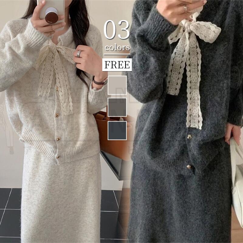 セットアップ ニット スカート レディース 2点セット 上下セット セーター カーディガン ニットセットアップ ニットスカート タイトスカート 前開き リブニット 綿 コットン 長袖 通勤 ガーリー ゆったり 無地 エレガント 大人 30代 40代 50代 秋 冬 おしゃれ 送料無料 4,030 ~