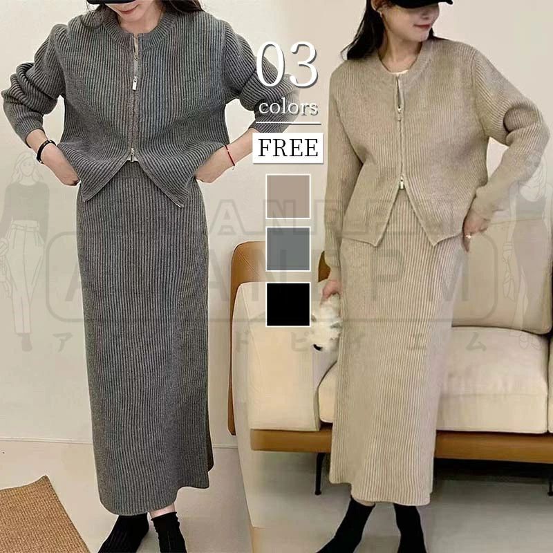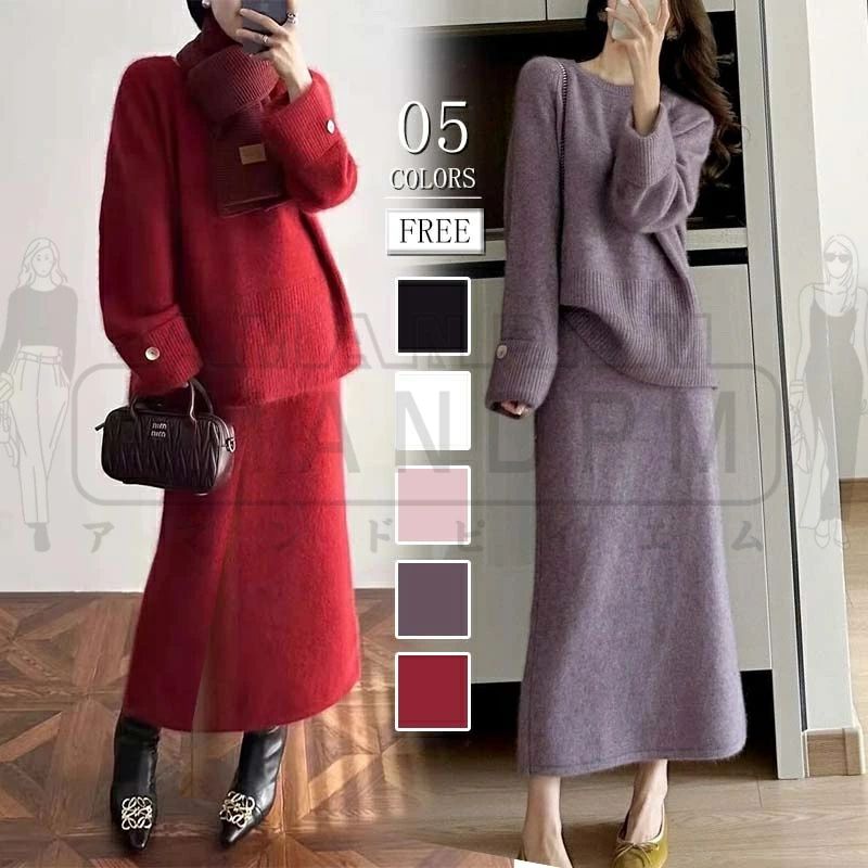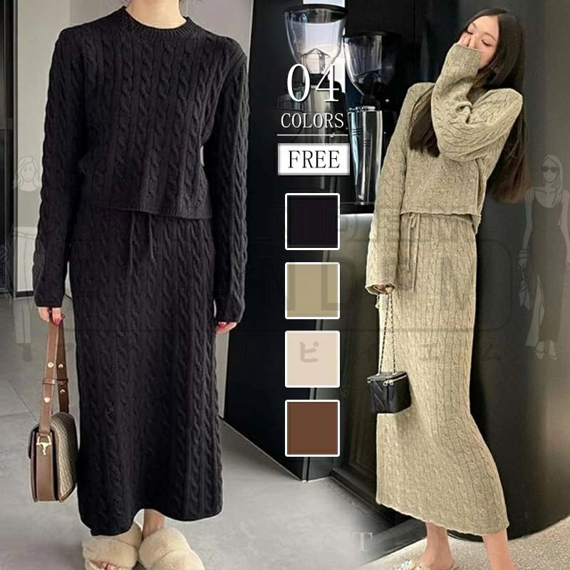 レディース 韓国ファッション セットアップ スカートセット ボトムス 上下セット トップス ニット 長袖 ロングワンピース Aライン フレアワンピース ラップ ラップ風 オフィス カジュアル 秋 冬 SSMINA 9,620 ~