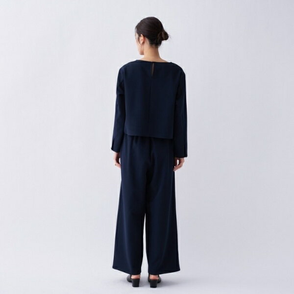 [型番:R9155004]【デザイン】・トップスとパンツの上下セットアイテム。 ・トップスは、ボートネックがデコルテラインを美しく見せる短めのクロップド丈で、全体のバランスを整えスタイルアップを実現。 ・ワイドパンツは、美しい落ち感があり、身体のラインを拾いにくいストレートシルエットで体型カバー効果も◎。 ・ウエスト総ゴム仕様で、快適でイージーな穿き心地を提供します。 【素材】・さらりと着られる手軽さが魅力のリラクシーな素材。 ・自宅で手軽にケアできるウォッシャブル仕様。 ・シワになりにくいためケアが簡単です。 【着こなしポイント】・セットアップで着用し、付け衿やブローチを合わせると、オケージョンシーンにもすぐに決まるきれいめスタイルが完成。 ・上下別々に着回せる汎用性の高さが魅力。 トップスは単品でデニムと、パンツはフォルムシャツとの合わせもおすすめです。 モデル身長:165cmーーーーーーーーーーーーーーーーーー気になるアイテムはお気に入り登録がおすすめ!お気に入り登録で、再入荷通知やお値下げ情報をお知らせ。 お得な情報をいち早くお届けいたします!アイテムページにある、ハートマークをクリックして追加できます。 ーーーーーーーーーーーーーーーーーー※照明の関係により、実際よりも色味が違って見える場合があります。 また、パソコン・スマートフォンなどの環境により、若干製品と画像のカラーが異なる場合もございます。 ■カラー:3色展開01(S):トップス着丈:46cm トップスB:97cm トップス袖丈:51cm トップス肩幅:45cm パンツW:63cm パンツH:111cm パンツ股下:64cm パンツ前股上:32cm パンツ渡り幅:35cm パンツ裾幅:31cm02(M):トップス着丈:47cm トップスB:100cm トップス袖丈:52cm トップス肩幅:46cm パンツW:66cm パンツH:114cm パンツ股下:65cm パンツ前股上:32cm パンツ渡り幅:36cm パンツ裾幅:32cm03(L):トップス着丈:48cm トップスB:103cm トップス袖丈:53cm トップス肩幅:47cm パンツW:69cm パンツH:117cm パンツ股下:67cm パンツ前股上:33cm パンツ渡り幅:37cm パンツ裾幅:33cm※( )で表記されている数字はヌードサイズです。 ヌードサイズとは衣服を身につけない身体のサイズです。 お客様ご自身の身体サイズと比較してお選びください。 ■素材: トップス:ポリエステル90% ポリウレタン10% パンツ:ポリエステル90% ポリウレタン10% ■お手入: >>商品のお取り扱い方法 ■原産国: 中国製【2点セット/オケージョン/マシンウォッシュ】プレシャスセットアップ/クロエンス(cloenc)ブラック(019)ライトベージュ(051)ネイビー(094)画面上と実物では、多少色具合が異なって見える場合がございます。