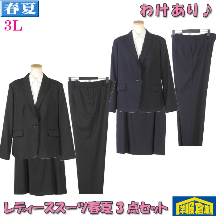 ■この商品は少々わけあり商品です■ ウォッシャブル製品を洗い、どの位しわができるか試された商品サンプルになります。 その為、若干のしわがあります。 ※本商品に関する返品・商品交換・サイズ交換等はお受けすることができません。 ※ ご理解、ご了承の程よろしくお願い申し上げます。 商品番号<lbs21> シーズン 春夏 ポイント ジャケット+パンツ+スカートの3点セット 安心の着用感の希少大きめサイズ パンツ、スカート共にウエストゴム入りで快適な着用感 【訳あり箇所】 ウォッシャブル製品を洗い、どの位しわができるか試された商品サンプルです その為、若干のしわがあります ご購入時の注意点 * 本商品の交換・返品はお受けすることができません * ご了承の程、宜しくお願い致します。 素材 表地:毛50% ポリエステル50% 裏地:ポリエステル100% メッシュ部分 ナイロン83% ポリウレタン17% カラー・柄 1 黒・ストライプ 2 濃紺・ストライプ 仕様 【1釦ジャケット】 ・背抜き仕立て、センターベント、袖口スリット ・フロント釦留め1か所 ・両側腰ポケット 【パンツ】 ・ウエストゴム ・前カン ・インタック ・要裾上げ 【スカート】 ・ウエストゴム ・リアファスナー ・フレアシルエット 裾直し承ります。 こちらへ 【訳あり】洗える スーツ レディース ビジネススーツ 秋冬物ジャケット+パンツ+スカート 3点セット 3Lサイズ 裾補正必要 全2柄 6000 LBS21 6,600 ~