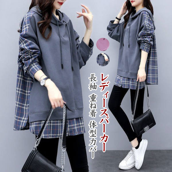 グオーリーブナー パーカー レディース 重ね着 長袖 トップス フード カジュアル ゆったり スウェット 春 秋 冬 通勤 無地 おしゃれ トレーナー 可愛いオーバーサイズ 薄手 お出かけ プルオーバー 体型カバー 韓国 上品 カジュアル おしゃれ 2,400 ~
