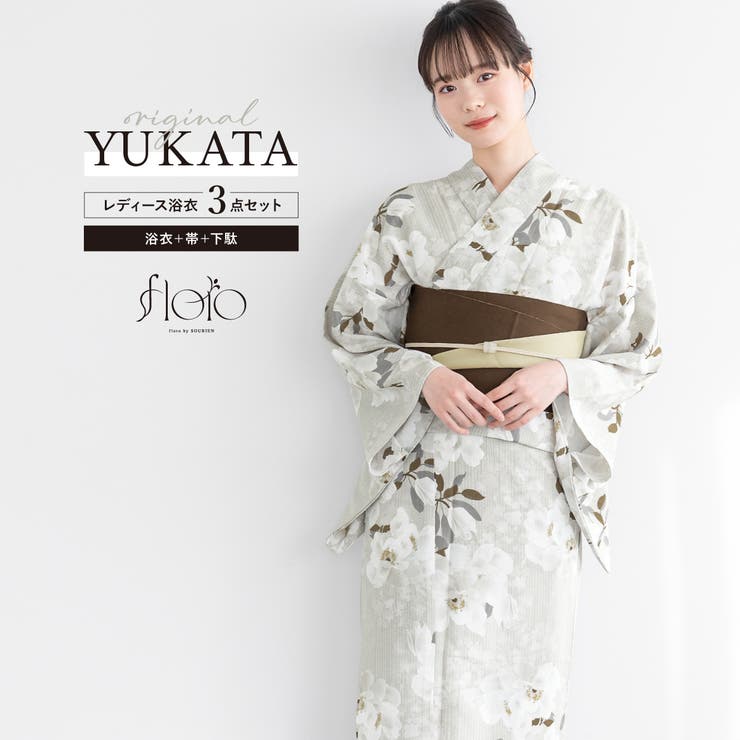 【10%OFFクーポン!1/29(木)1:59まで】SOUBIEN 浴衣 セット レディース 浴衣セット 半幅帯 2025 floro 簡単 涼しい コーディネート済み 白 茶 青 黄 紫 灰色 ベージュ モダン くすみカラー おしゃれ S フリー 浴衣 12,980 ~