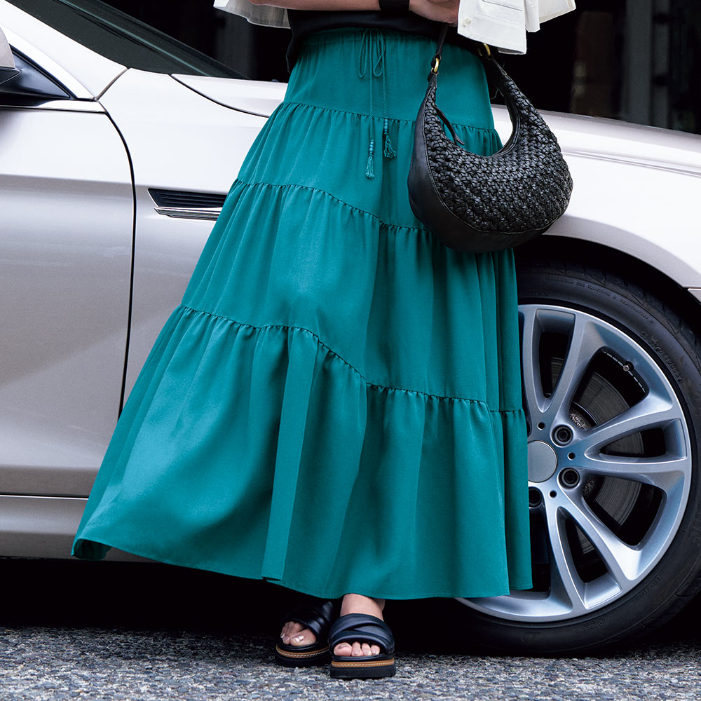 Resort Mood自然界のカラーパレットや大胆なプリント、リラクシーモードなシルエット…。 日常でも旅先でも心躍る装いを叶えるのが洗練されたリゾートムードが漂うアイテムです。 新しいお気に入りを、ぜひ見つけてください!斜め切り替えで甘さを抑えたロング丈ティアードスカート。 ショートジャケットを羽織って軽快に着こなすのが気分!≫ POINTグラスビーズ付きのウエストコードがアクセントのボヘミアンテイスト香るロングスカート。 ページ下部に画像の説明がございます。 一部別売りの商品もございますので、説明文ご確認のうえご注文ください。 >画像の説明はこちら<仕様・サイズこの商品はセール品のため返品できません■色:ブルーグリーン■素材:再生繊維(セルロース)56・ポリエステル35・麻9%■ウエストゴム・ドローストリング仕様■原産国:中国製■素材の性質上、麻の繊維(ネップ)が含まれる場合があります。 ■ウエストは、ゴム上がりの設定寸法です。 ◆サイズ(cm)【S】スカート総丈 86ウエスト 64【M】スカート総丈 88ウエスト 68【L】スカート総丈 88ウエスト 72【LL】スカート総丈 88ウエスト 76【3L】スカート総丈 88ウエスト 80【送料マーク:A】 この商品の販売価格には配送料880円(税込)が含まれています。 画像の説明コーディネート例コーディネート例 【クーポン最大5千円OFF 1/28迄】 グラスビーズ付き ティアードスカート スカート ファッション PC5439 \LINE友だち登録でクーポン/ 8,880 ~