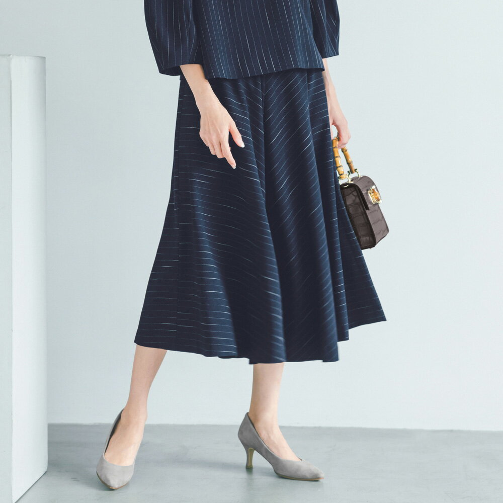 洗練されたシルエットでシックなムードと女性らしさを兼備ピンストライプ柄のスカートは、分量感のあるフレア、ニュアンスのある柄の出方がシャープな雰囲気を和らげ女性らしく。 中央に向けて柄をバイアス使いにし、上品なフレアラインを演出。 オンオフ問わず楽しめます。 ページ下部に画像の説明がございます。 一部別売りの商品もございますので、説明文ご確認のうえご注文ください。 >画像の説明はこちら<仕様・サイズこの商品はセール品のため返品できません■色:ネイビー■素材:ポリエステル99・レーヨン1%■左脇ホック・ファスナー開き■後ろウエストゴム仕様■原産国:中国製(生地は日本製)■商品により柄の出方が多少異なります。 ■ウエストサイズはゴム上がりの寸法です。 ◆サイズ(cm)【61】裾幅 316スカート総丈 75ウエスト 64ヒップ(適応) 89重量(約g) -ベルト幅 3【64】裾幅 320スカート総丈 75ウエスト 68ヒップ(適応) 91重量(約g) 360ベルト幅 3【67】裾幅 324スカート総丈 75ウエスト 72ヒップ(適応) 93重量(約g) -ベルト幅 3【70】裾幅 328スカート総丈 75ウエスト 76ヒップ(適応) 95重量(約g) -ベルト幅 3※商品によっては、中心サイズを参考重量として掲載しています。 【送料マーク:A】 この商品の販売価格には配送料880円(税込)が含まれています。 画像の説明コーディネート例スラブ糸を使用することでピンストライプにかすれ感が生まれ、こなれた印象に。 Waist Back Style 【クーポン最大5千円OFF 1/28迄】 ピンストライプ フレアスカート スカート ファッション PC5908 \LINE友だち登録でクーポン/ 7,780 ~
