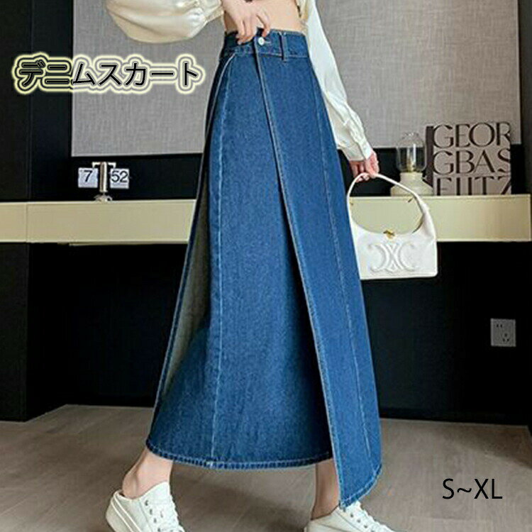 体型 ハイウェスト ビンテージ タイト きれいめ 秋冬 カジュアル Aライン マキシ丈 デニムスカート レディース ラップスカート 3,750 ~