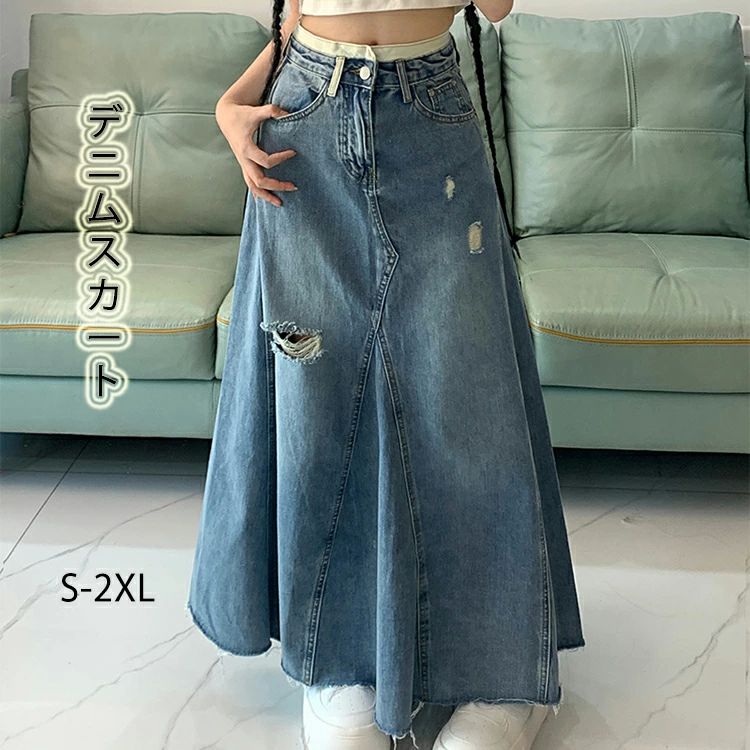 レディース カジュアル スカート 大きいサイズ マキシ丈 デニムスカート ロング丈 Aライン ロングスカート フレア デニム 巻き 4,148 ~