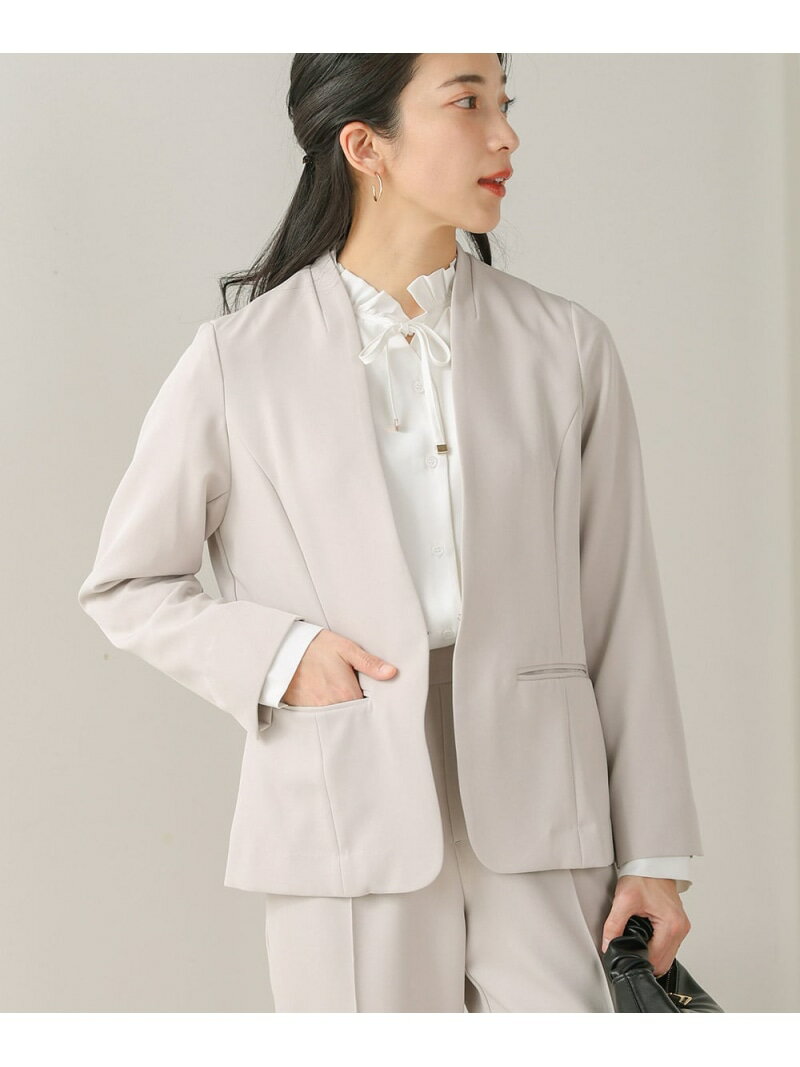 \P5倍★20%OFFクーポン配布中/《サイズ交換無料》アウター レディース ジャケット 単品 ノーカラー ストレッチ チェック ヘリンボン S-8L 洗える 裏地有 上下別売 スーツ ノーカラージャケット 七五三 ママ 通勤 おしゃれ 10,990 ~