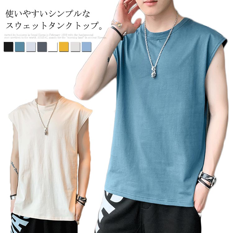 ノースリーブ Tシャツ メンズ タンクトップ トップス スウェットシャツ ラウンドネック 袖なし 無地タンク インナー 無地 ストレッチ 薄手 ゆったり お洒落 インナーシャツ 肌着 大きいサイズ シンプル カジュアル プルオーバー 夏物 夏新作 2,640 ~