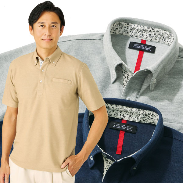 <サイズ表> 単位cm サイズ 胸囲(適応サイズ) 肩幅 袖丈 身丈 M 104(88〜96) 43 26.5 69 L 108(96〜104) 45 27.5 71 LL 112(104〜112) 47 28.5 73 3L 116(108〜116) 49 29.5 75 製品仕様 着用シーズン目安 春夏 カラー グレー・カーキ・ネイビーの同サイズ3色組 ※商品によって柄の出方が異なる場合があります。 素材 ポリエステル65%・綿35% 仕様 左胸ポケット付、両脇スリット約4cm 洗濯 洗濯機可(ネット使用) 生産国 中国シャツのきちんと感とポロシャツの楽々感を両立 キシリトール加工 接触冷感お出かけポロシャツ 3色組 クールビズにぴったりのきれい目ポロシャツ キシリトールプリントをした接触冷感素材を使用した半袖ポロシャツ。 襟元がきちんと決まるボタンダウン仕様でジャケットインにも最適。 シャツのきちんと感とポロシャツの楽々感を兼ね備えています。 襟内側と前立てから覗く小花柄がお洒落感を醸し出します。 クールビズに、カジュアルに、お出かけに、様々なシーンで活躍する、大人に似合うポロシャツです。 合わせやすい定番カラーのグレー・カーキ・ネイビーの3色セットでお届けします。 着用イメージ カラーバリエーション・セット内容 キシリトール加工 ポロシャツ 同サイズ3色組 接触冷感 半袖 CoolBiz クールビズ メンズ 春夏 40代 50代 60代 958071 9,889 ~
