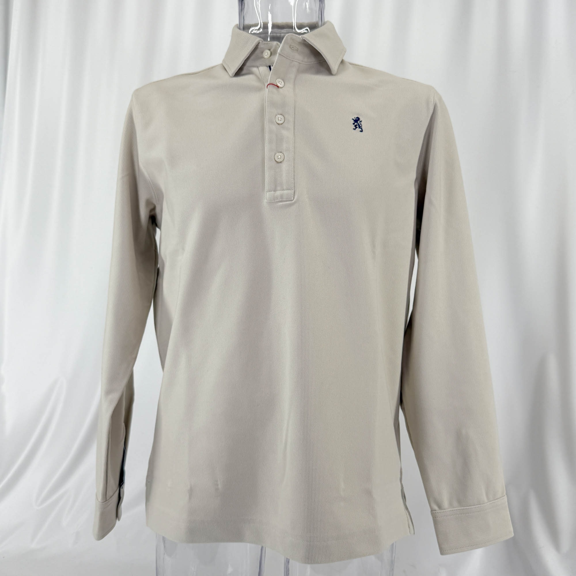 長袖ポロシャツ メンズ 無地ストライプ スリムフィット 伸縮 クールビズ ポリエステル (ベージュ, L) 3,780 ~