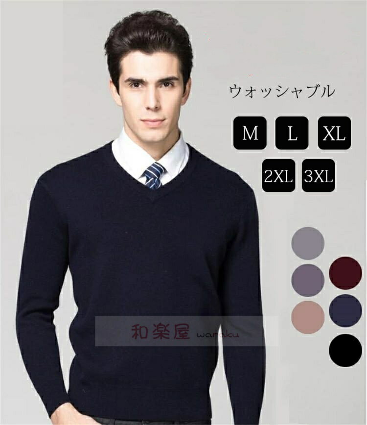 セーター メンズ ビジネス Vネック 長袖 薄手 カットソー ニット トップス 洗える 厚手 ビジネス カジュアル スーツ オフィス 秋 冬 プルオーバー シンプル 無地 スクールセーター 制服 リブ袖 黒 紺 ネイビー ラシニコ 5,382 ~