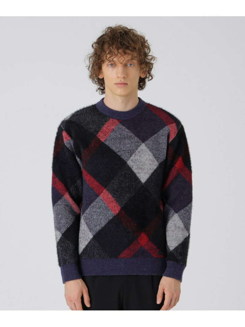 【SALE/25%OFF】BLACK LABEL CRESTBRIDGE ビッグスケールバイアスチェックニット ブルーレーベル / ブラックレーベル・クレストブリッジ トップス ニット ネイビー【送料無料】 29,700 ~